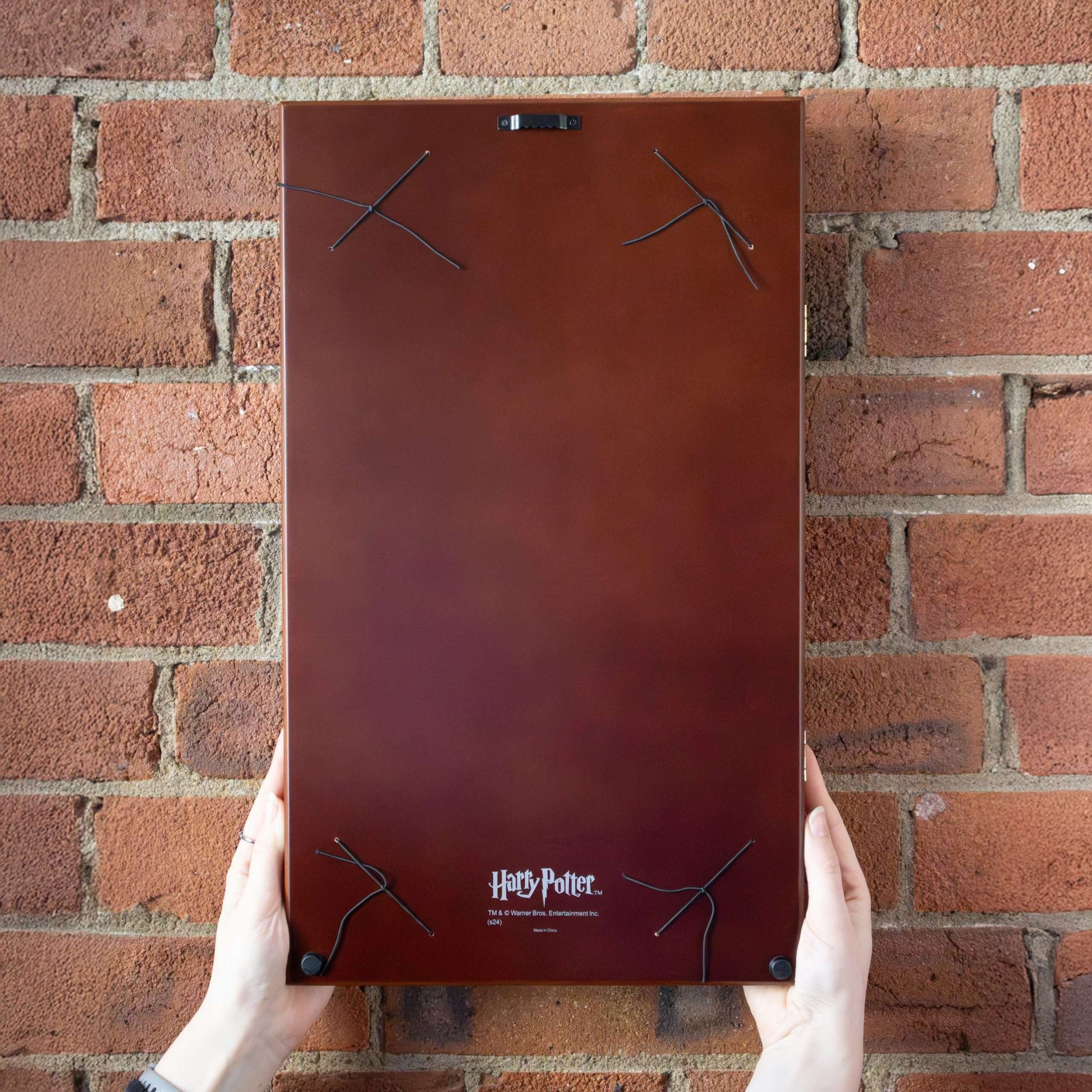 A wooden display case for the Marauder’s Map, with intricate golden detailing and a hinge & clasp opening. Map sold separately.